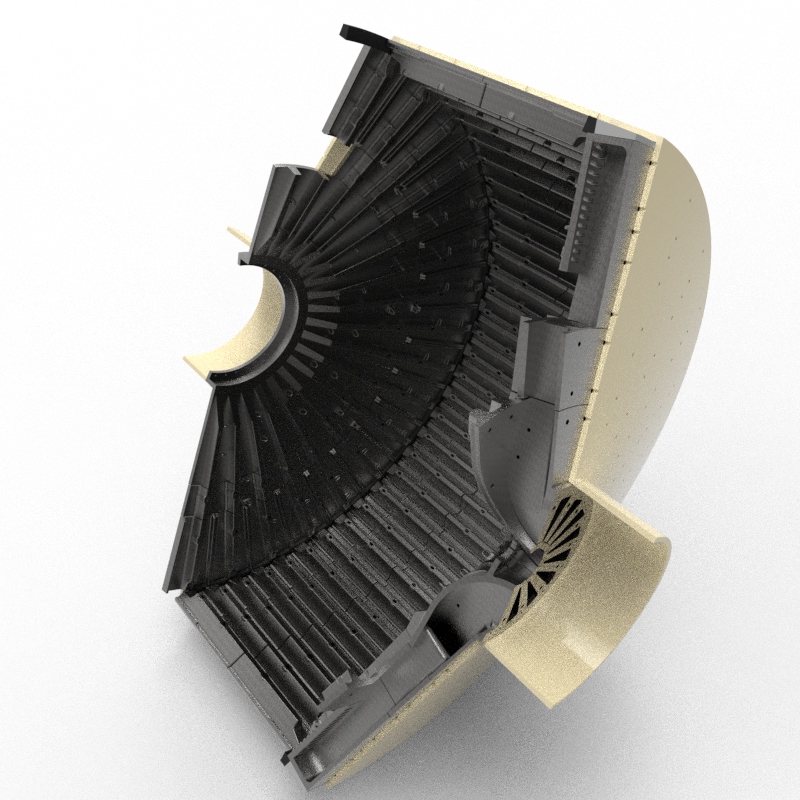 筒体衬板:安装在磨机筒体内壁,抵御钢球与矿石的冲击磨损,分为楔形、条形、波形衬板,采用 Mn13、Mn18Cr2 高锰钢,抗冲击硬化、韧性优异。